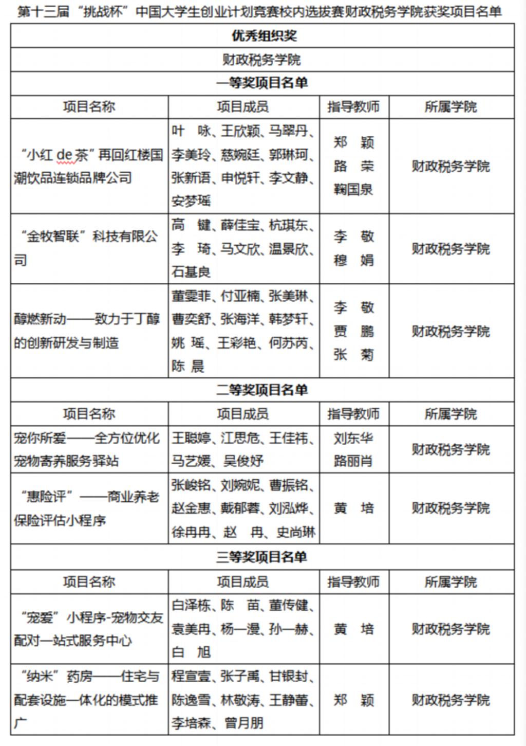 近日,太阳成集团tyc234cc主页公布第十三届“挑战杯”中国老员工创业计划竞赛院内选拔赛获奖名单。公司斩获佳绩,公司荣获优秀组织奖,共有7支队伍在本次选拔赛获得校级奖项,其中一等奖3项,二等奖2项,三等奖2项。