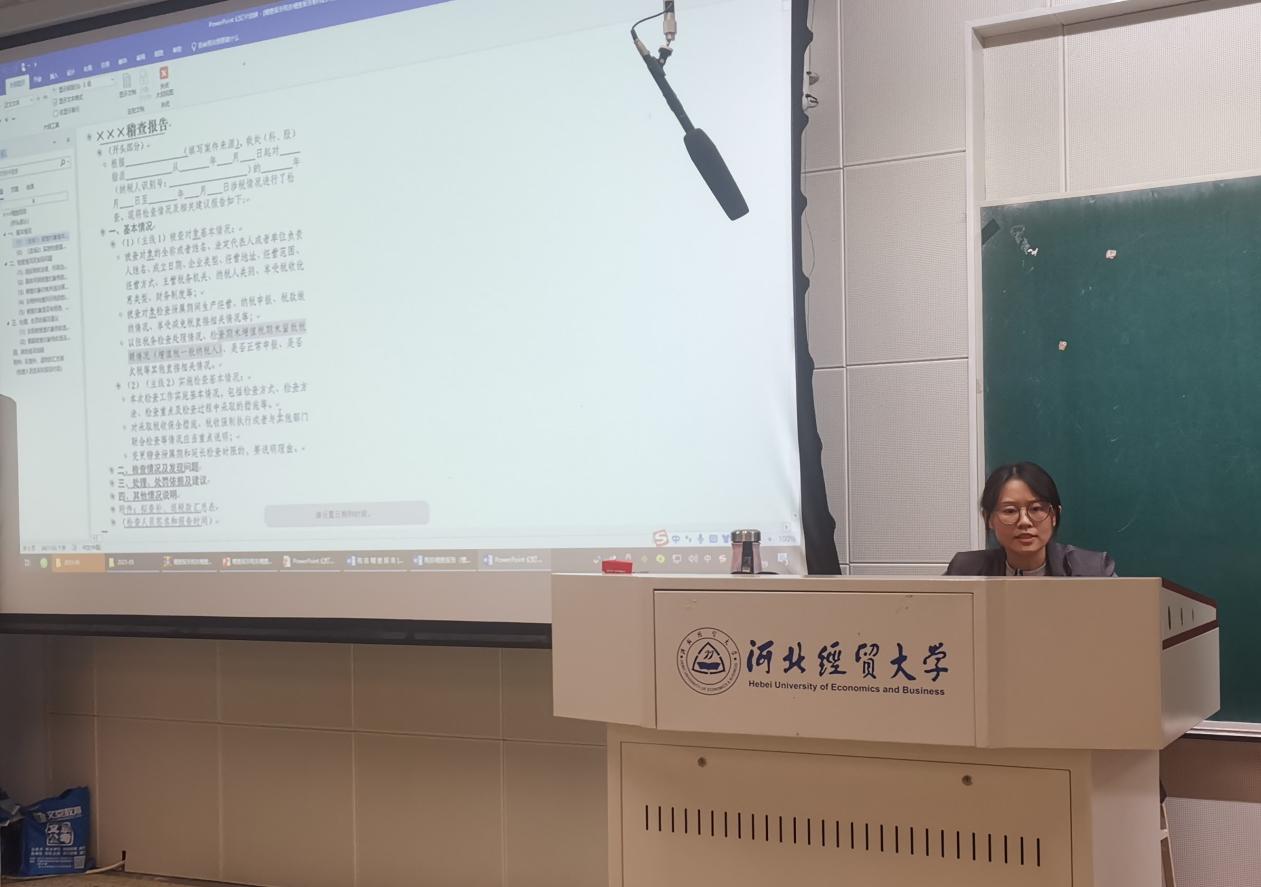 刘老师结合自己多年的税务稽查实践经验以及对税务稽查报告撰写的心得体会,从税务稽查报告的重要作用、税务稽查报告的内容及要求以及新形势、新要求下税务稽查报告撰写的趋势等三个方面阐述了税务稽查报告撰写的内在逻辑以及制作技巧;阐明了税务稽查报告要有严密的逻辑性和条理性,虽然不同人员撰写风格不同,但均应符合文字简练、内容完整、逻辑清晰、表述准确、制作规范等基本要求。刘老师的报告内容翔实、针对性强、信息量大,极具实务指导意义。最后刘老师还与同学们就税务师、公务员考试进行了互动和交流,鼓励大家深入学习税收理论与政策,为了以后的工作奠定基础。