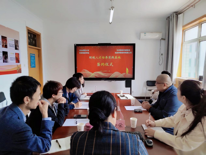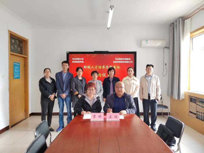 11月2日上午,公司与北京国佳中睿致信税务师事务所有限公司签署财税人才培养实验基地的签约仪式在公司会议室举行。党委副书记胡卓理、副经理温立洲、北京国佳中睿致信税师事务所所长孟佳、税务系系主任曹琳、财政系系主任李玉姣、税务专硕导师组组长李金荣及公司部分教师参加了签约仪式。