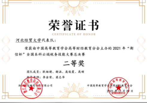 11月28日,由中国高等教育学会高等财经教育分会主办,浙江衡信教育科技有限公司提供技术支持的2021年“衡信杯”全国本科云端税务技能大赛总决赛在线上成功举办。