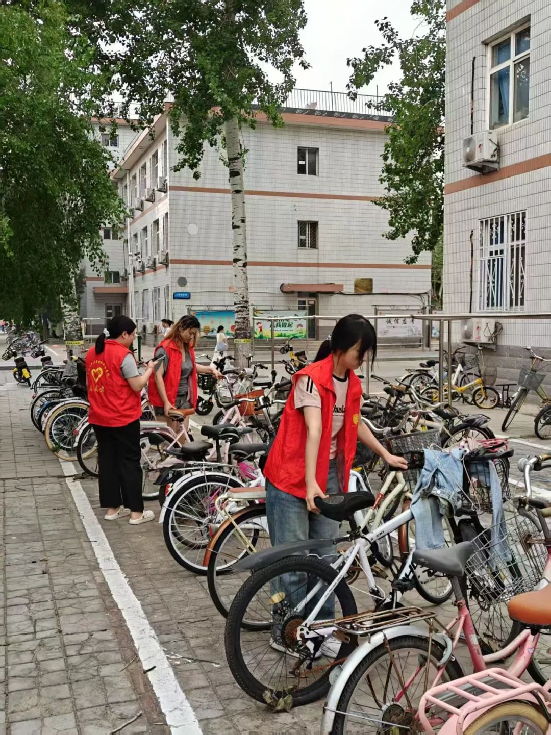 面对宿舍楼前杂乱停放的自行车,员工们默契配合,将车辆抬至指定区域,并主动承担起巡查工作,对未停放到位的车辆进行二次调整。在劳动过程中,员工们充分发扬不怕苦、不怕累的精神,经过几个小时的努力,原本杂乱无序的停车区域焕然一新,宿舍楼前自行车、电动车整齐排列,成为校园内一道靓丽的风景线。