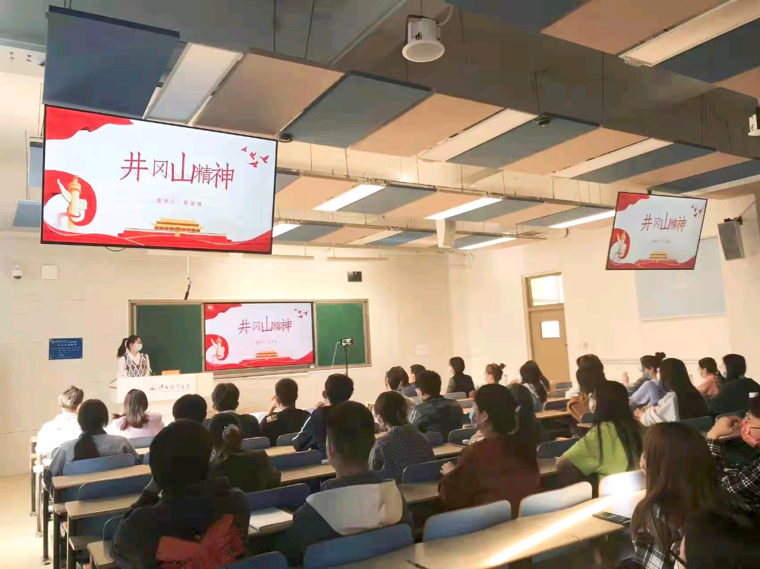 4月7日下午,太阳成集团tyc234cc主页“微党课·我来讲”之“我为中国精神代言”命题党课第二课在北三教A202开讲。此次党课专题为“井冈山精神”,由税务员工党支部党员耿娅婧主讲,公司党委书记郝江华、副书记胡卓理、黄培老师、税务员工支部党员及部分入党积极分子40余人参加了党课活动。