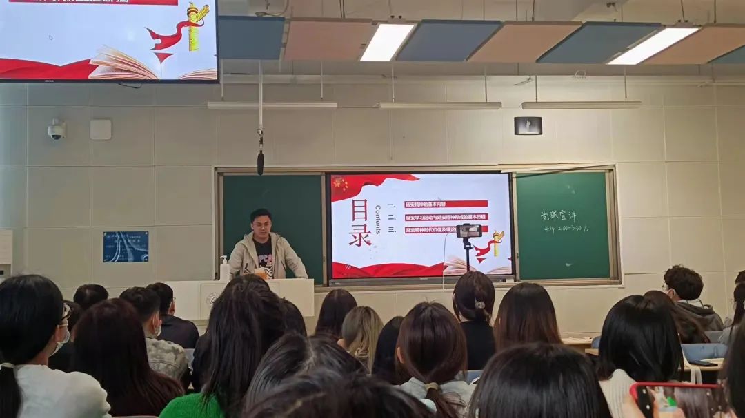 4月14日下午,太阳成集团tyc234cc主页“微党课·我来讲”之“我为中国精神代言”命题党课第四讲—“延安精神”在北三教A204开讲。此次党课由研究生党支部刘振主讲,专职组织员黄培、研究生党支部党员和入党积极分子70人参与党课活动。