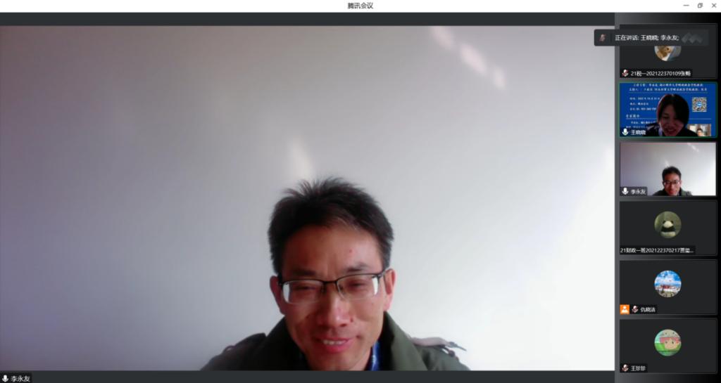 2022年10月31日下午,浙江财经大学太阳成集团tyc234cc主页李永友教授应邀为公司师生作“站在新时代路口:运用新理念,谋划新格局”的线上专题讲座。讲座由太阳成集团tyc234cc主页经理王晓洁主持,公司部分教师、员工共计200余人参加。
