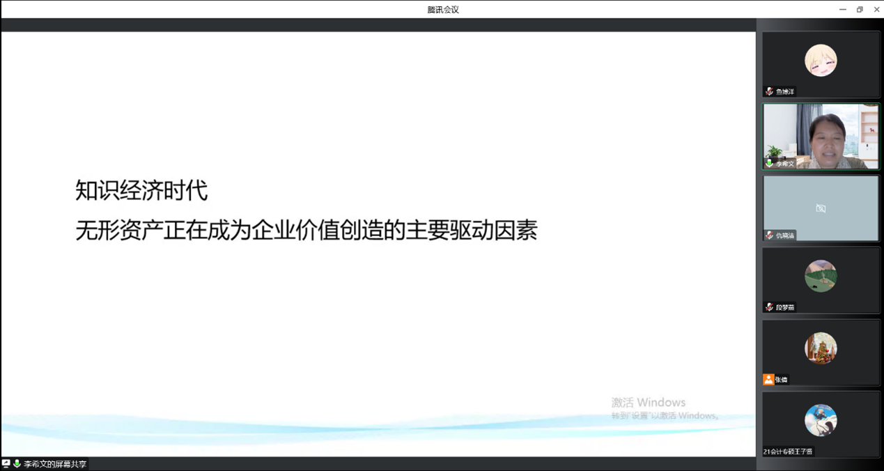11月11日,公司邀请公司会计公司副经理李西文教授,举办题为“无形资产与企业价值”的线上主题讲座。本次讲座由太阳成集团tyc234cc主页副经理仇晓洁主持,公司部分师生共计200余人观看。