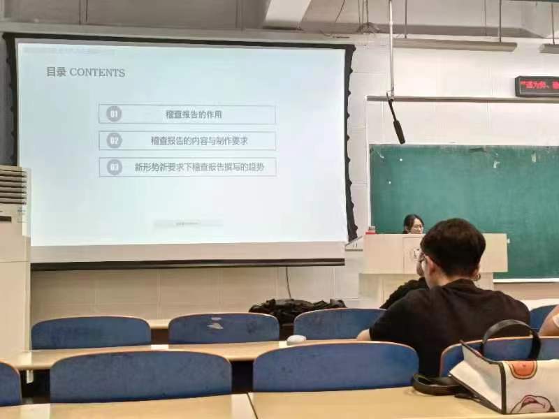 本次讲座围绕着三方面内容展开。首先,刘爽讲解了税务稽查报告的作用、内容与制作要求。税务稽查报告既要有逻辑性和条理性,还要全面反映稽查的过程及结果。其次,刘爽通过展示税务机关不同人员撰写的稽查报告实例,具体讲解稽查报告需要撰写的内容、稽查报告的制作要求以及新形式要求下稽查报告撰写的趋势。她指出,税务稽查报告的写作必须具备文字简练、内容完整、逻辑清晰、表述准确、制作规范等特点。最后,刘爽和研究生们分享了考公的经验和心得,激励研究生努力钻研,实现自己心中的梦想与目标。