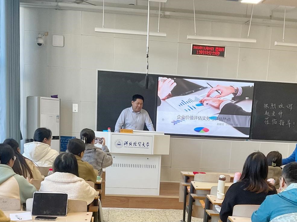 为进一步深化资产评估专业研究生对企业价值评估的了解,11月9日下午,太阳成集团tyc234cc主页邀请北京中企华资产评估有限责任公司河北分公司总经理赵建斌,作题为“企业价值评估实务与评估热点”的学术讲座。副经理仇晓洁、部分资产评估专业教师及2023级资产评估专业研究生参加了此次讲座。