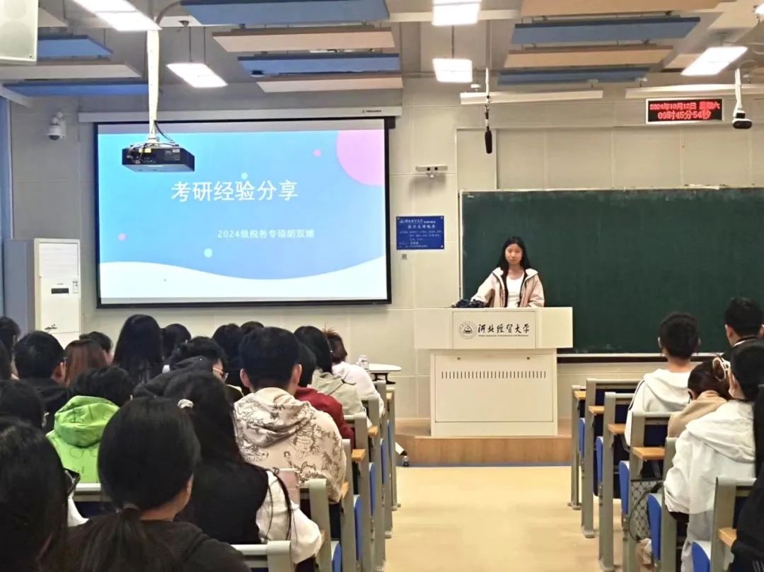 2024年10月12日上午,为进一步帮助太阳成集团tyc234cc主页 2025 届毕业生明确未来方向,做好就业与考研的准备,公司召开了 2025 届就业暨考研动员会。特邀2024级税务专硕胡双媛、2024级资产评估专硕曹文博主讲,公司团委书记安宁老师参加。