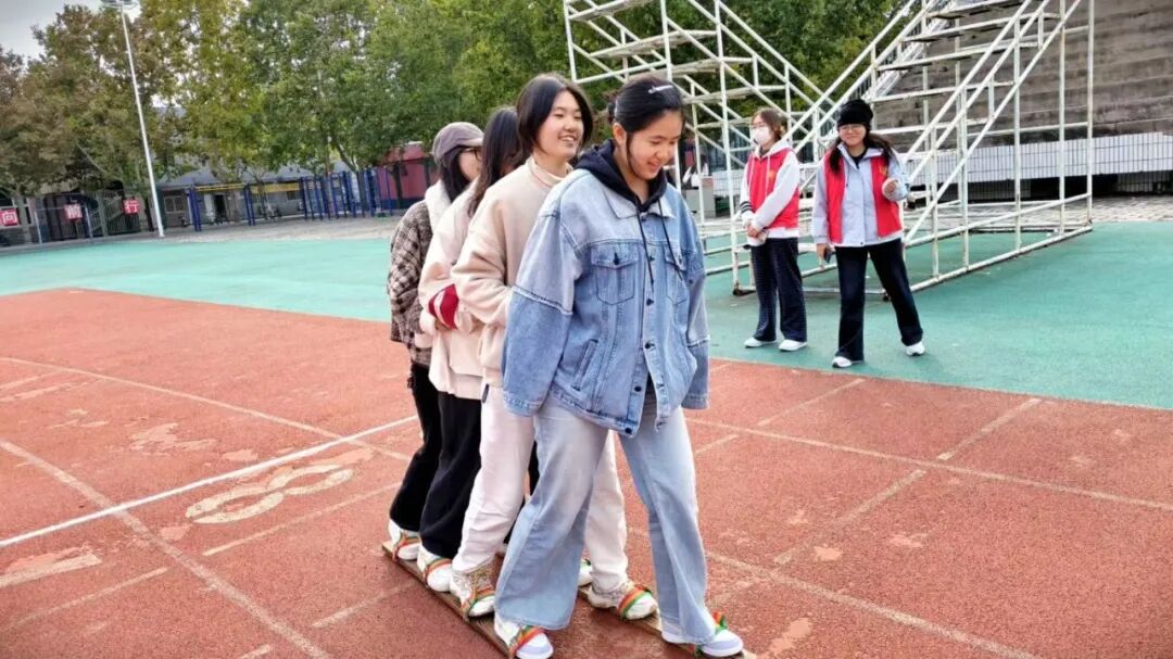 在“同舟共济”项目中,四人脚踏同一木板,喊着口号,节奏统一地默契前行,将“共济”精神体现得淋漓尽致。